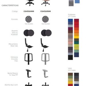 Cadeira para escritório executiva giratória 43503 – Sem regulagem – Linha Flip Light – Braço SL New PP – Cavaletti – Aranha Polaina – Estrutura preta