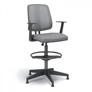 Cadeira Giratória Stool 43122 SRE, Aranha Nylon, c/ Sapata, Encosto em Tela, Braço SL