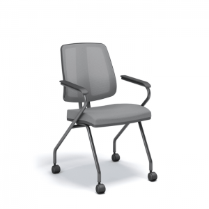 Poltrona Fixa Aproximação 43106 ZI Executiva, c/ Rodizio 50 Nylon – Encosto Tela Preta – Braço Integrado, Injetada Estrutura Preta – Linha Flip – Cavaletti