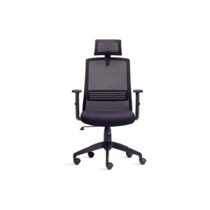 Cadeira Giratória Executiva YON – Braço SL New PU Preto – Estrutura Preta