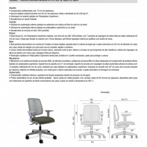 Tipo de Mecanismo Mecanismo com Back Sistem, sistema reclinador do encosto (SRE), permitindo regulagem de altura do encosto automática através de catraca em 12 posições e inclinação do encosto em infinitas posições.