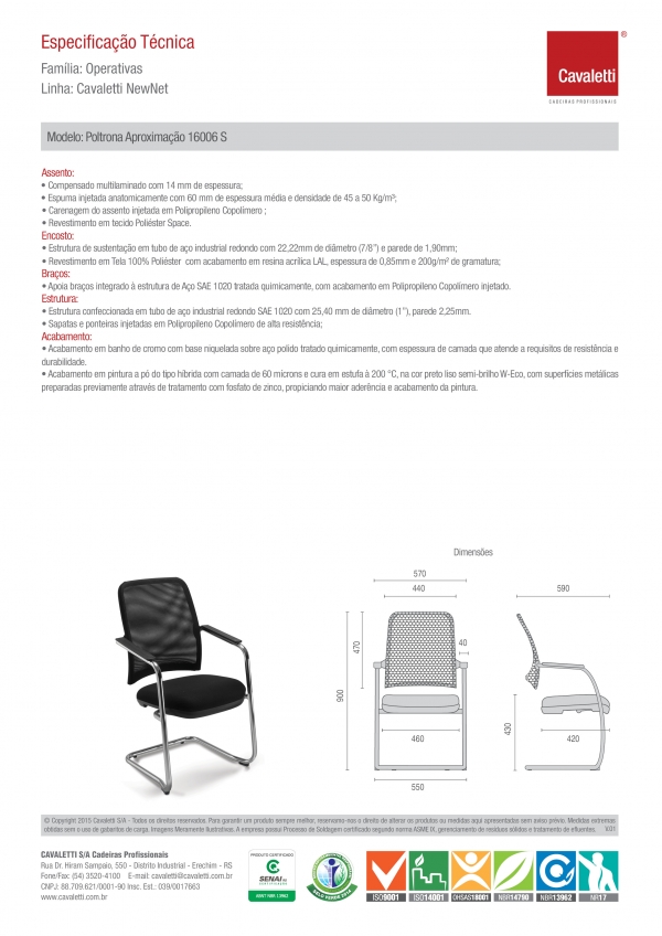 Cadeira para escritório fixa aproximação 16006 S – Estrutura Cromada – Linha NewNet – Cavaletti