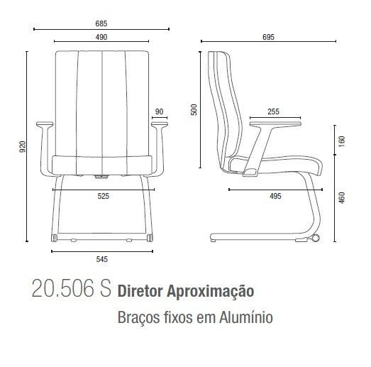 Tipo de Braço  Apoia braços fixo em alumínio.
