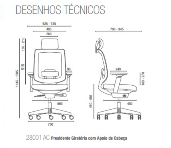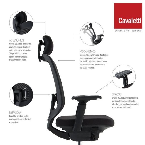 Cadeira para escritório giratória presidente 28001 AC – Syncron – Linha C3 – BRAÇO 4D – Cavaletti – Base Alumínio