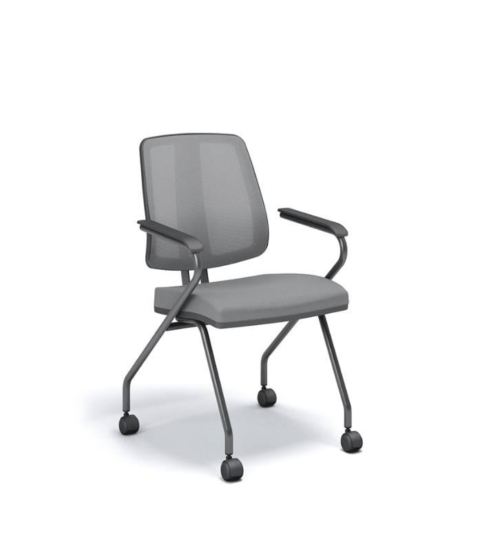 Poltrona Fixa Aproximação 43106 ZI Executiva, c/ Rodizio 50 Nylon – Encosto Tela Preta – Braço Integrado, Injetada Estrutura Preta – Linha Flip – Cavaletti
